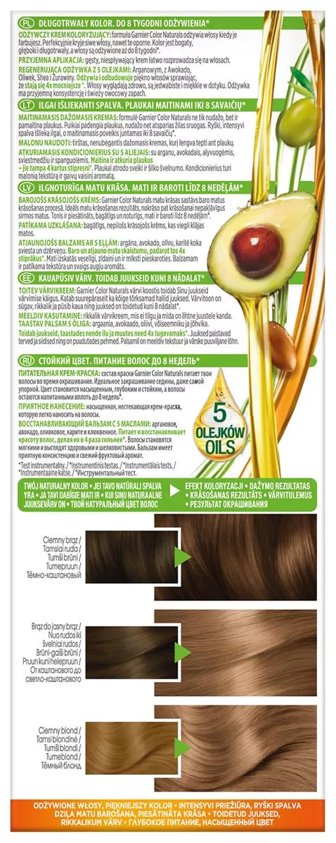 - Aby zakończyć koloryzację, nałóż na całą długość włosów pielęgnującą odżywkę z 3 olejkami. Pozostaw na kilka minut i następnie spłucz.