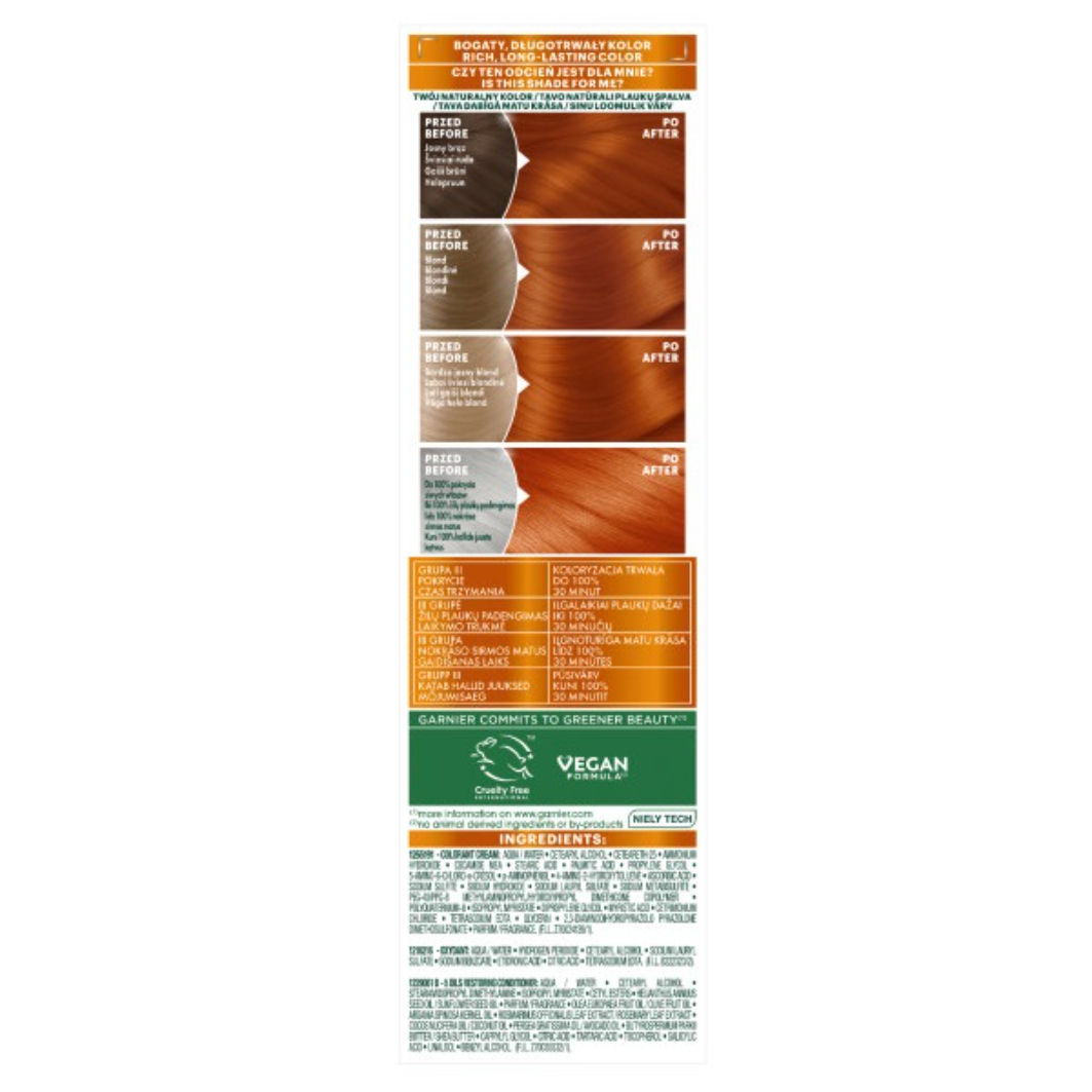 Odkryj intensywny kolor i perfekcyjne pokrycie siwych włosów dzięki farbie Garnier Color Naturals 7.40+ Miedziany Blond. Ta wyjątkowa farba do włosów zapewnia długotrwały efekt koloryzacji, odżywienie i jedwabistą miękkość. Idealna dla osób pragnących uzyskać pełne blasku, elastyczne i zdrowo wyglądające włosy.