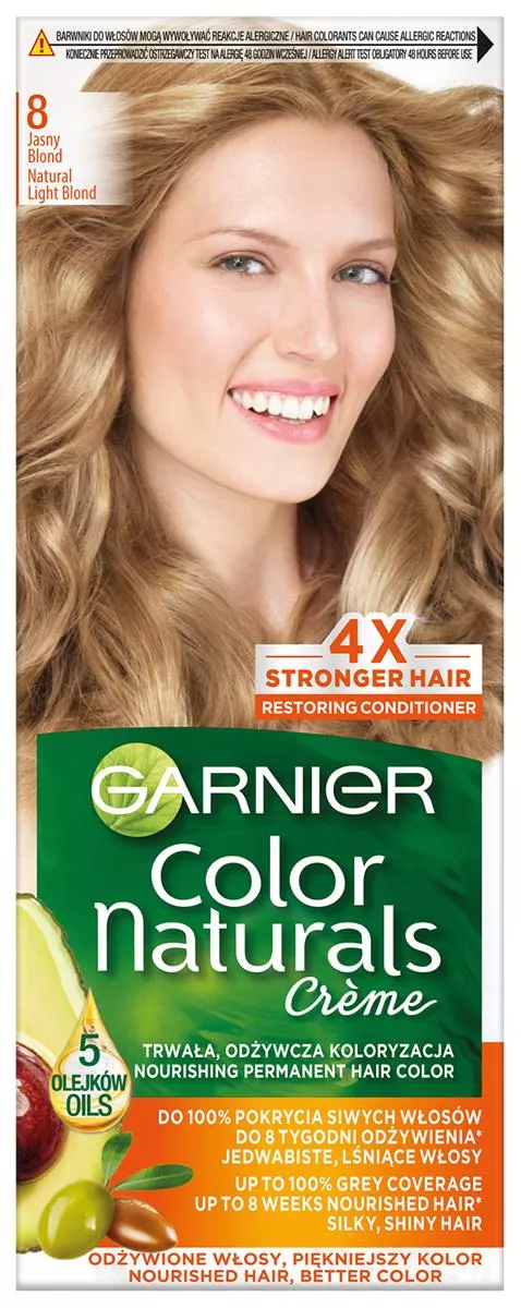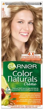 Garnier Color Naturals 8 Jasny blond, odżywcza farba do włosów, do 100% pokrycia siwych włosów