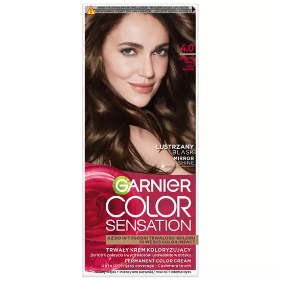 Krem koloryzujący Garnier Color Sensation 4.0 Głęboki Brąz to idealne rozwiązanie dla osób poszukujących długotrwałego, zmysłowego koloru z lustrzanym blaskiem. Produkt zapewnia nawet do 100% pokrycia siwych włosów, dzięki czemu włosy zyskują witalność i młodzieńczy wygląd.