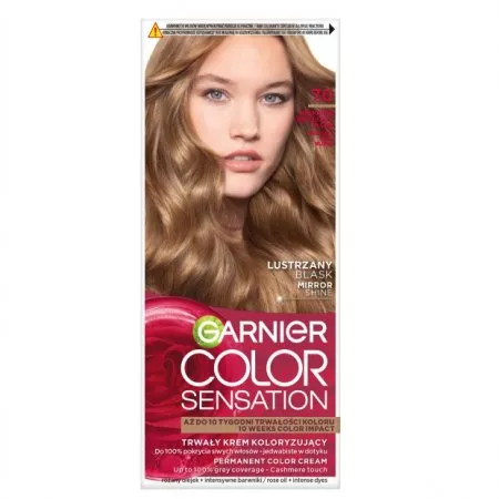 Garnier Color Sensation Krem koloryzujący 7.0 Delikatnie opalizujący blond to wyjątkowy produkt, który zapewnia długotrwały, zmysłowy kolor z lustrzanym blaskiem. Dzięki unikalnej formule, ten krem koloryzujący oferuje nawet do 100% pokrycia siwych włosów, nadając im lśniący i jedwabiście miękki wygląd.