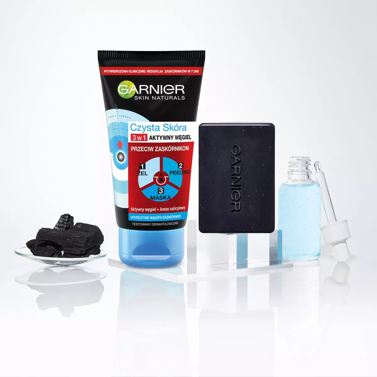 Garnier Czysta Skóra 3w1 Żel Oczyszczający + Peeling + Maska przeciw zaskórnikom z aktywnym węglem to innowacyjny produkt stworzony dla osób z tłustą lub mieszaną cerą, które zmagają się z niedoskonałościami i zaskórnikami. Jego wszechstronna formuła pozwala na stosowanie go jako żelu do mycia, peelingu oraz maski, skutecznie redukując zaskórniki i zapobiegając ich ponownemu powstawaniu.