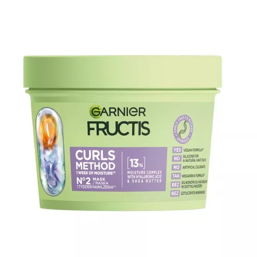 Garnier Fructis Curls Method to maska do włosów kręconych, która zapewnia intensywne nawilżenie utrzymujące się przez tydzień. Produkt został zaprojektowany i zatwierdzony dla wszystkich rodzajów fal i loków, przetestowany na typach loków od 2 do 6.