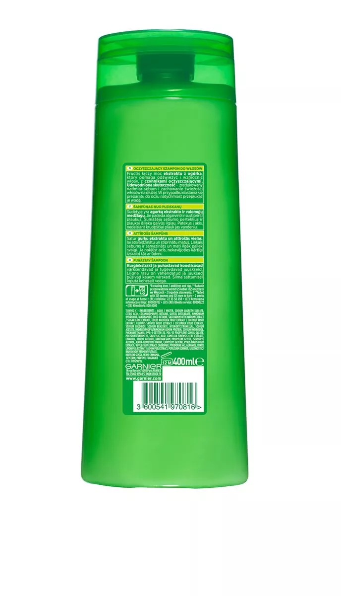Odkryj moc świeżości z Garnier Fructis Fresh szamponem oczyszczającym 400ml. Stworzony z myślą o widocznie zdrowszych i mocniejszych włosach, ten szampon łączy białka z cytryny, witaminy B3 i B6 oraz ekstrakty z owoców i roślin o udowodnionej skuteczności. Dzięki formule wzbogaconej o ekstrakt z ogórka, Twoje włosy będą odświeżone i wzmocnione, zachowując świeżość na dłużej. Badania przeprowadzone wśród 125 kobiet i 125 mężczyzn we Włoszech potwierdzają skuteczność produktu po 2 tygodniach stosowania.