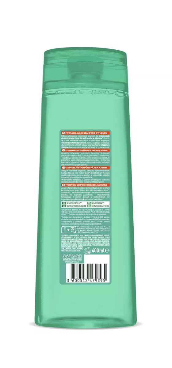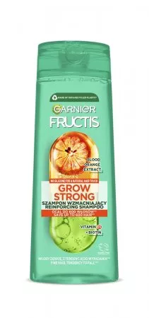Odkryj siłę szamponu Garnier Fructis Grow Strong Orange, stworzonego specjalnie dla włosów cienkich z tendencją do wypadania. Dzięki unikalnej formule, która łączy moc ekstraktów owocowych z aktywnymi składnikami, ten szampon wzmacnia włókna włosów i poprawia ich kondycję od nasady aż po same końce. Zawiera ekstrakt z pomarańczy chińskiej, pochodną witaminy C oraz biotynę, które wspólnie przyczyniają się do wzmocnienia włosów i zapobiegają ich nadmiernemu wypadaniu. Przy regularnym stosowaniu 3 razy w tygodniu możesz ocalić do 600 włosów miesięcznie**.