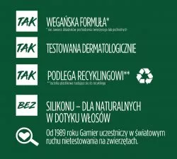 - Możliwość użycia na trzy różne sposoby: odżywka, maska, pielęgnacja bez spłukiwania.
