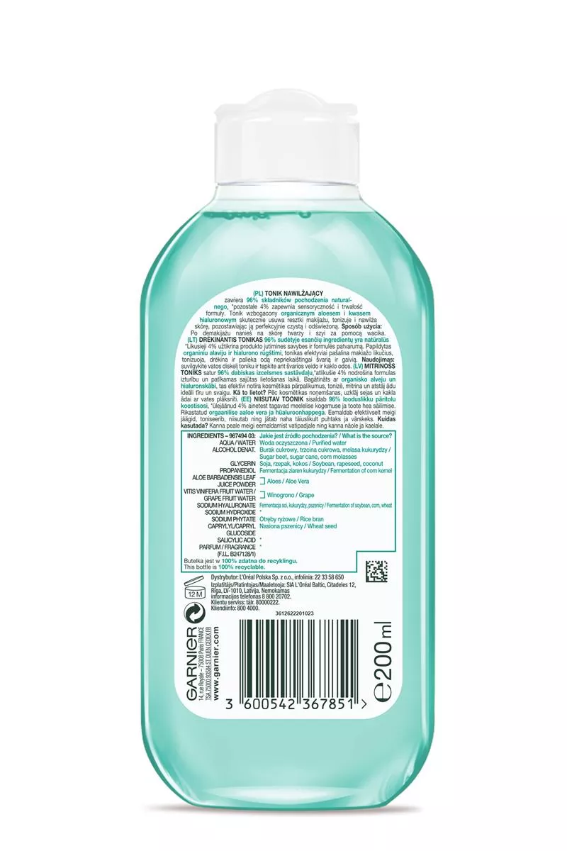 Garnier Hyaluronic Aloe Tonik nawilżający z kwasem hialuronowym i ekstraktem z aloesu 200ml