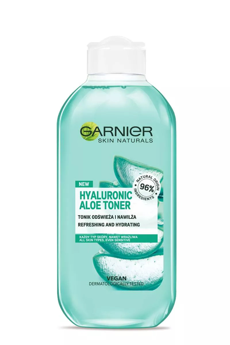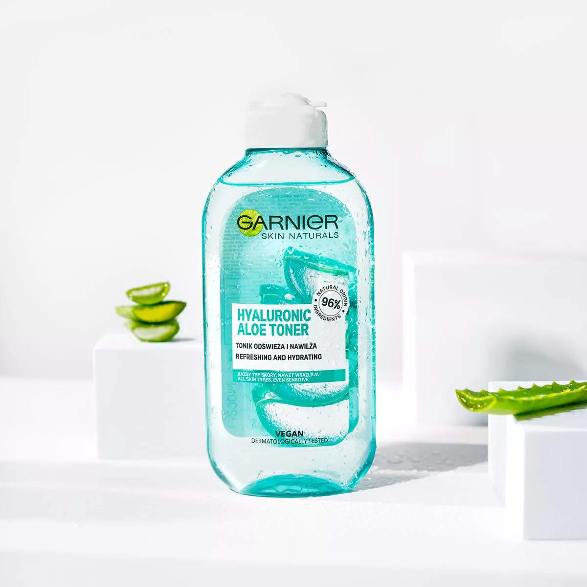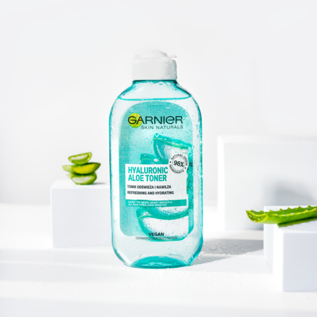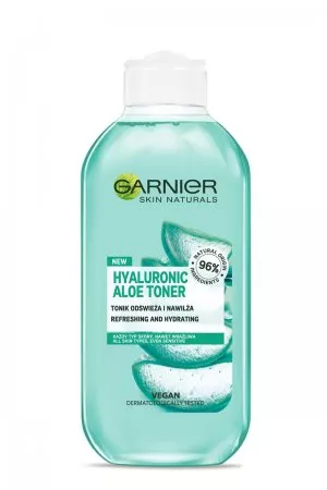 Garnier Hyaluronic Aloe Tonik to idealne rozwiązanie dla osób poszukujących delikatnej, a zarazem skutecznej tonizacji skóry. Formuła wzbogacona organicznym aloesem i kwasem hialuronowym skutecznie usuwa resztki makijażu, tonizuje i nawilża skórę, pozostawiając ją perfekcyjnie czystą i odświeżoną. Kwas hialuronowy, znany ze swojej zdolności do wiązania 1000 razy więcej wody niż sam waży, wspomaga intensywne nawilżenie, podczas gdy aloes koi i łagodzi podrażnienia. Produkt zawiera aż 96% składników pochodzenia naturalnego, a pozostałe 4% zapewniają sensoryczność i trwałość formuły. Produkt jest przetestowany dermatologicznie, wegański, a butelka jest w 100% zdatna do recyklingu.