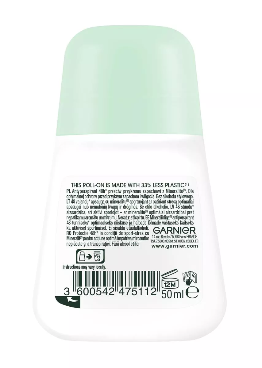 Garnier Mineral AC Stress (Classical) Dezodorant roll-on 50ml to innowacyjny antyperspirant stworzony przez Garnier, wzbogacony o opatentowany Mineralite* pochodzenia naturalnego, wydobywany ze skały wulkanicznej. Mineralite jest zdolny do absorpcji 2,5 razy więcej wody niż sam waży, co czyni go 5 razy bardziej absorbującym niż talk. Produkt zapewnia optymalną ochronę przed przykrym zapachem i wilgocią, jednocześnie pozwalając skórze oddychać. Dezodorant został przetestowany w ekstremalnych warunkach, nie zawiera alkoholu etylowego i jest testowany dermatologicznie.