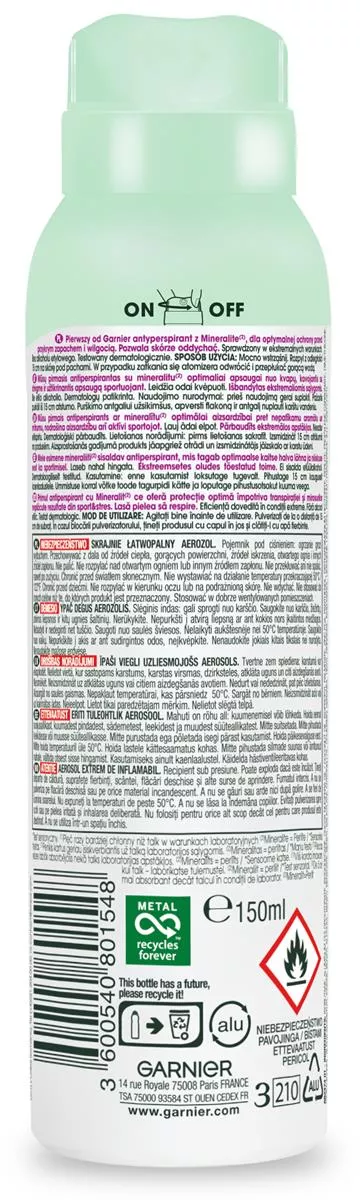 Garnier Mineral Action Control to antyperspirant w sprayu, który zapewnia skuteczną ochronę przed potem nawet do 48 godzin. Stworzony z myślą o komforcie i ochronie skóry, ten produkt sprawdza się w każdych warunkach - podczas upałów, intensywnych ćwiczeń i stresu. Dzięki unikalnej formule z pochodną aktywnego minerału, zapewnia wyjątkową skuteczność.