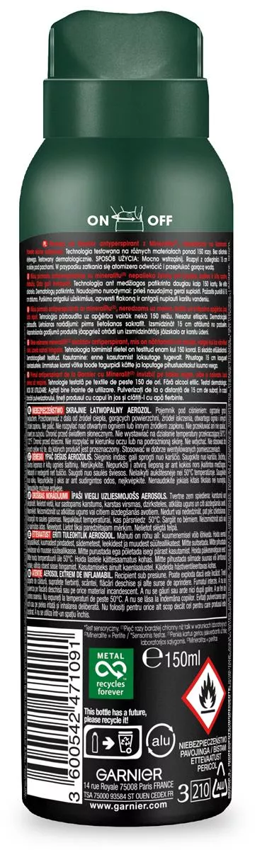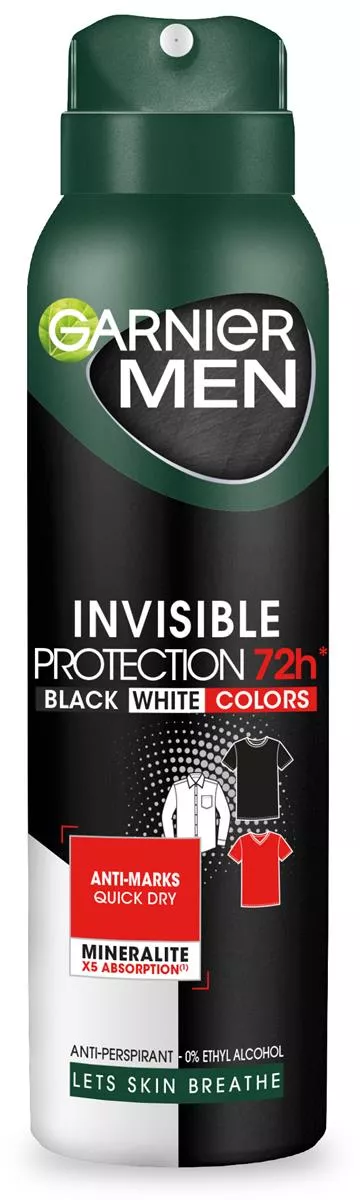 Garnier Mineral MEN BWC Dezodorant w sprayu 150ml to innowacyjny antyperspirant stworzony z myślą o mężczyznach, którzy cenią sobie skuteczną ochronę przed potem i nieprzyjemnym zapachem. Dzięki unikalnej formule z opatentowanym Mineralite* pochodzenia naturalnego, produkt absorbuje wilgoć znacznie skuteczniej niż tradycyjne składniki. Mineralite, wydobywany ze skały wulkanicznej, jest 2,5 razy bardziej chłonny niż jego waga, a jego absorpcja jest 5 razy wyższa niż talku. Dezodorant nie tylko zapewnia niezawodną ochronę, ale także pozwala skórze oddychać, nie pozostawiając śladów ani plam na ubraniach.