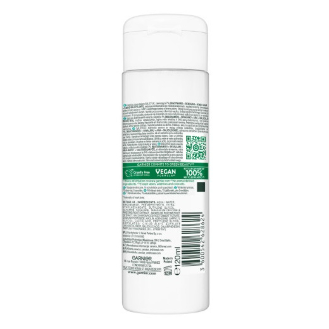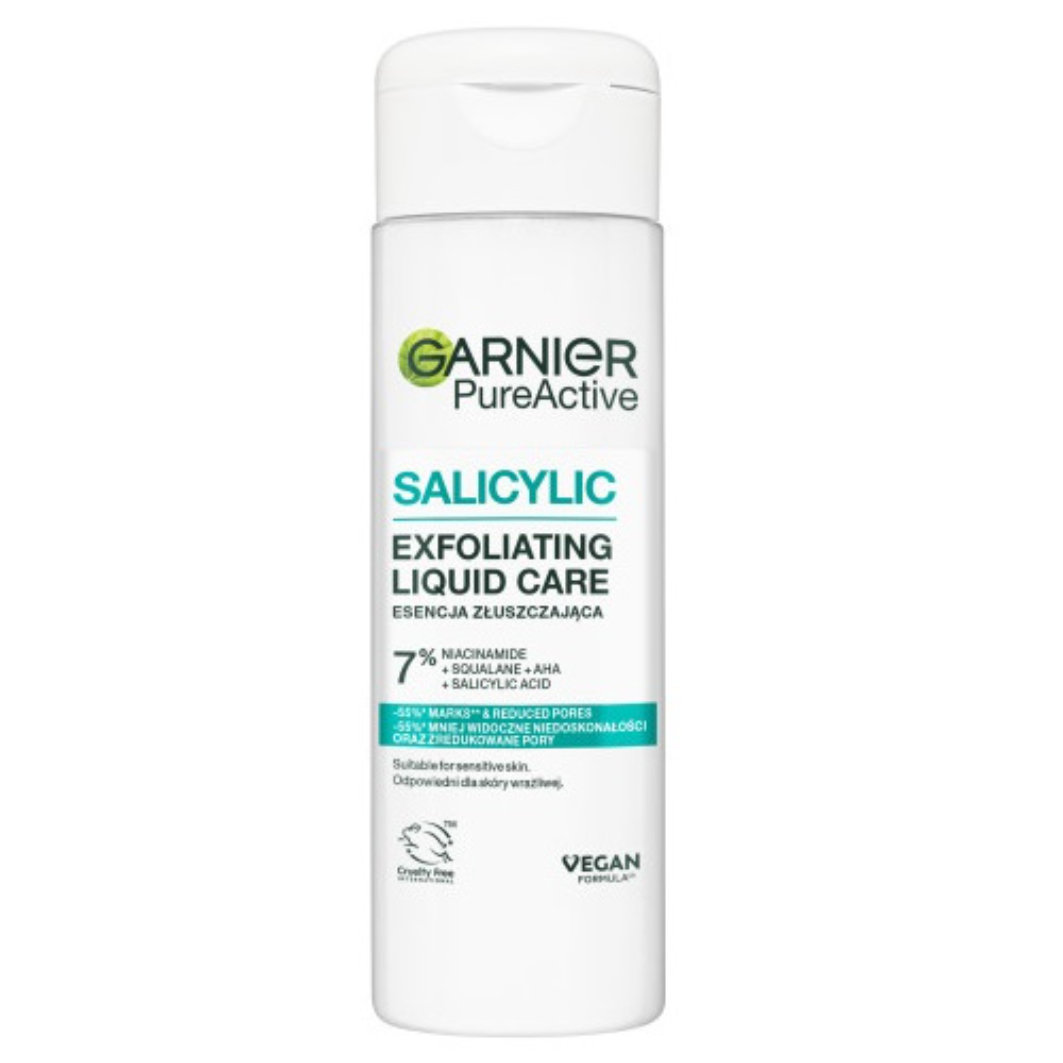 Garnier Pure Active Salicylic Esencja Złuszczająca 120ml to innowacyjny produkt do pielęgnacji skóry, który łączy w sobie moc 7% [niacynamid + skwalan + kwas AHA + kwas salicylowy]. Ta unikalna formuła skutecznie redukuje przebarwienia po niedoskonałościach, wygładza skórę, zmniejsza widoczność porów oraz wspiera barierę ochronną skóry. Lekka, płynna konsystencja szybko wchłania się, pozostawiając skórę gładką, bez uczucia lepkości i tłustości.
