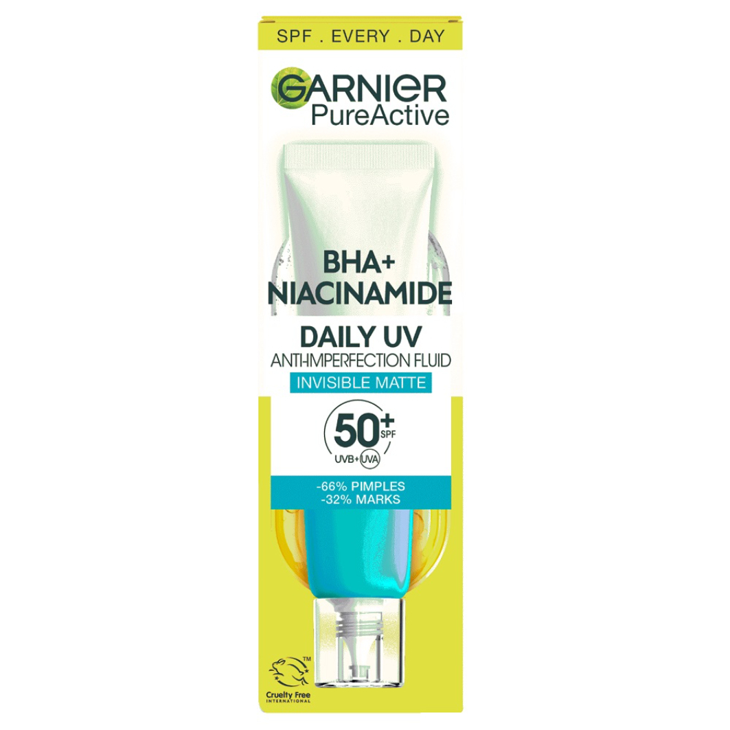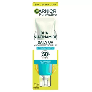 Odkryj nową, niewidoczną matową ochronę przeciwsłoneczną i przeciw niedoskonałościom z Garnier PureActive BHA + Niacinamide. Ten innowacyjny fluid do codziennego stosowania oferuje skuteczną ochronę SPF50+ oraz intensywną pielęgnację skóry tłustej i skłonnej do trądziku.