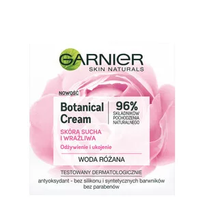 Nawilżający krem Garnier Skin Naturals z wodą różaną to wyjątkowy produkt, który w 96% składa się ze składników pochodzenia naturalnego. Jest idealny dla skóry suchej i wrażliwej, oferując lekką, nietłustą konsystencję, która szybko się wchłania, zapewniając skuteczne nawilżenie przez 48 godzin. Dzięki zawartości składników aktywnych działa antyoksydacyjnie. Zawarta w produkcie woda różana to silny, łagodzący oraz odżywiający składnik aktywny, który odpręża skórę i zapewnia wyjątkowy komfort.