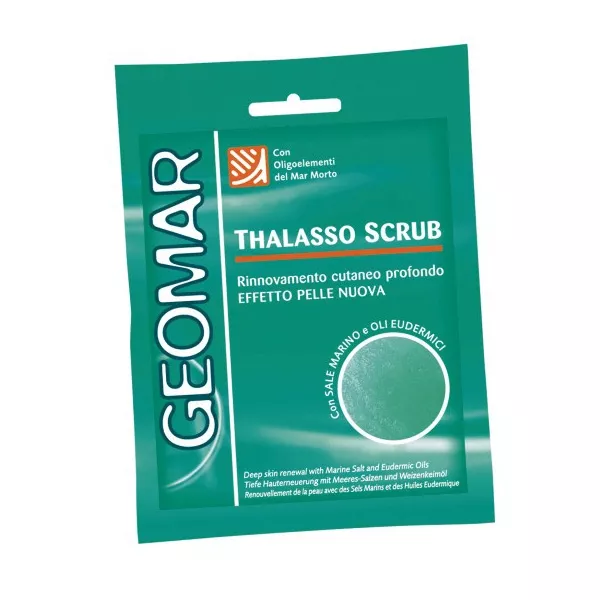Geomar Thalasso Scrub klasyczny peeling do ciała to skuteczny kosmetyk złuszczający, który usuwa martwe komórki naskórka i pozostawia skórę jasną, jedwabistą oraz gładką. Zawiera naturalne składniki, takie jak sól morska, olej z migdałów oraz olej z kiełków pszenicy, które intensywnie pielęgnują skórę, zmiękczają ją i pomagają zapobiegać jej starzeniu. Dodatek olejków eterycznych z mandarynek i pomarańczy nadaje peelingowi relaksujący, świeży zapach. Produkt zamknięty jest w wygodnej saszetce o pojemności 85g – idealnej na wypróbowanie lub w podróży.