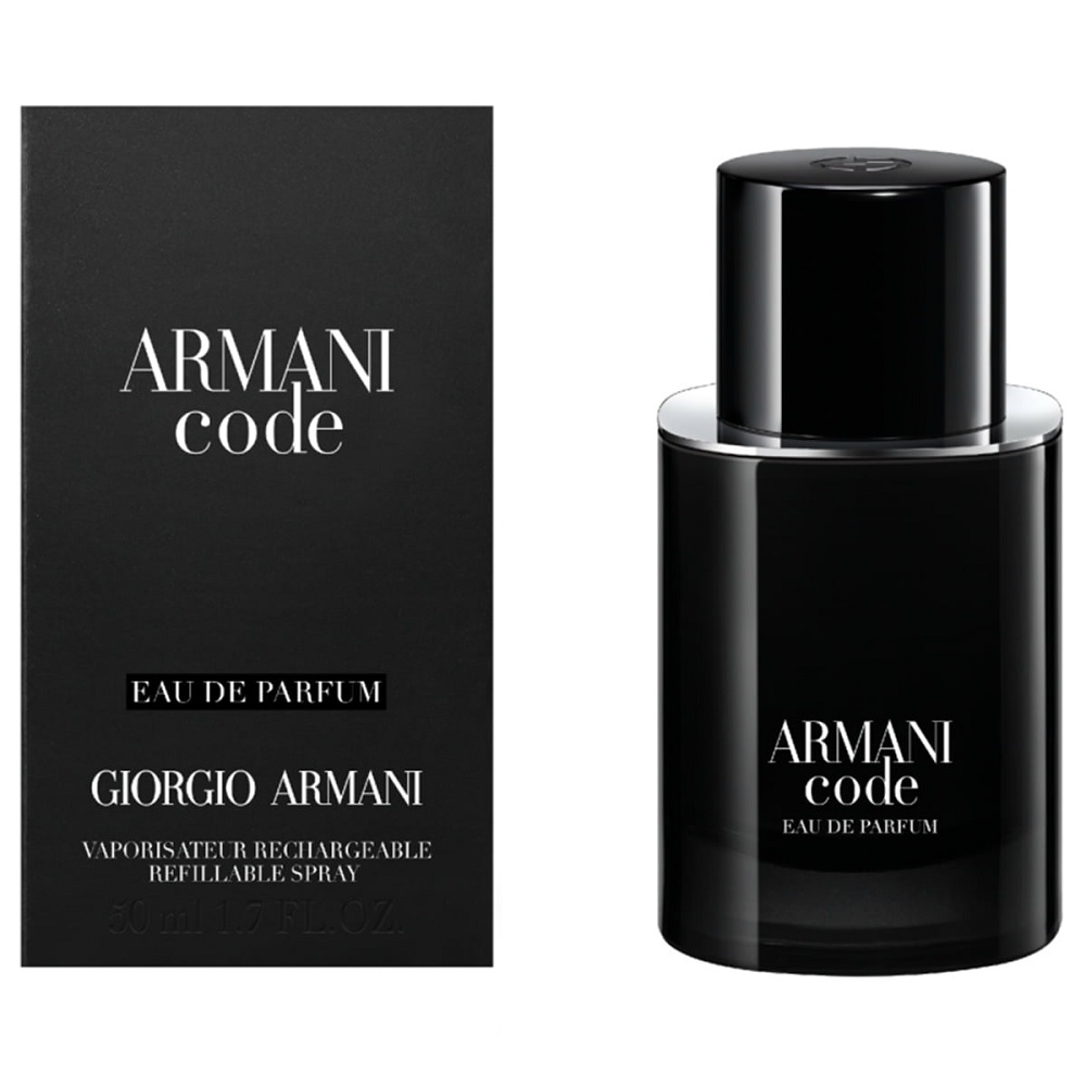 Giorgio Armani Armani Code Pour Homme woda perfumowana refillable spray 50ml to wyrafinowany zapach dla nowoczesnych mężczyzn, którzy cenią elegancję i trwałość. Kompozycja zachwyca bursztynowo-korzennym charakterem fougère, rozpoczynając się od świeżości zielonej mandarynki, przechodząc w pikantne nuty gałki muszkatołowej oraz zmysłową bazę z fasolą tonka. Designerski flakon z możliwością wielokrotnego napełniania podkreśla zaangażowanie marki w zrównoważony rozwój i luksusowy styl życia.