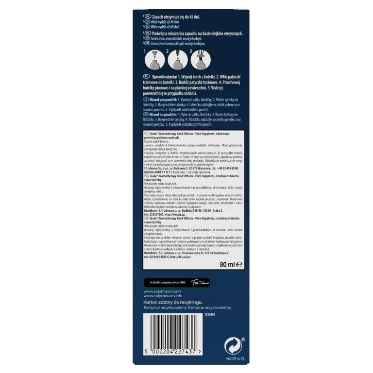 Patyczki zapachowe Glade Aromatherapy Reed Diffuser zapach Pure Happiness 80ml