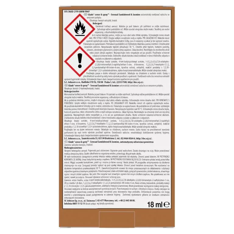 Automatyczny odświeżacz powietrza Glade SENSE & SPRAY z wkładem o zapachu jaśminu i drzewa sandałowego