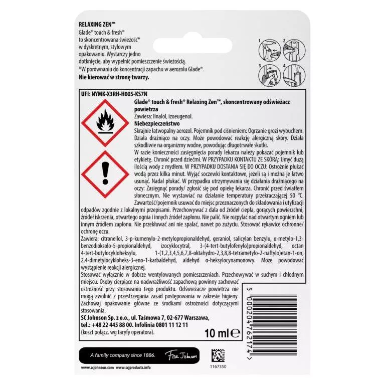 Skoncentrowany odświeżacz powietrza Glade Touch & Fresh zapach Relaxing Zen 10ml