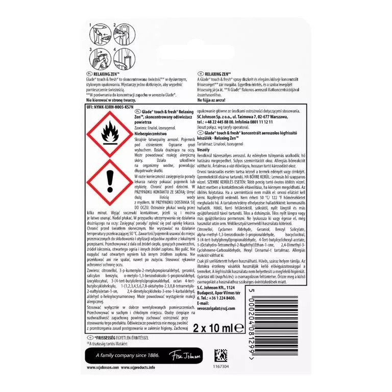 Glade touch & fresh, Sensual Sandalwood & Jasmine, Glade touch & fresh to skoncentrowana świeżość* w dyskretnym, stylowym opakowaniu. Wystarczy jedno dotknięcie, aby wypełnić pomieszczenie świeżością., *W porównaniu do koncentracji zapachu w aerozolu Glade.