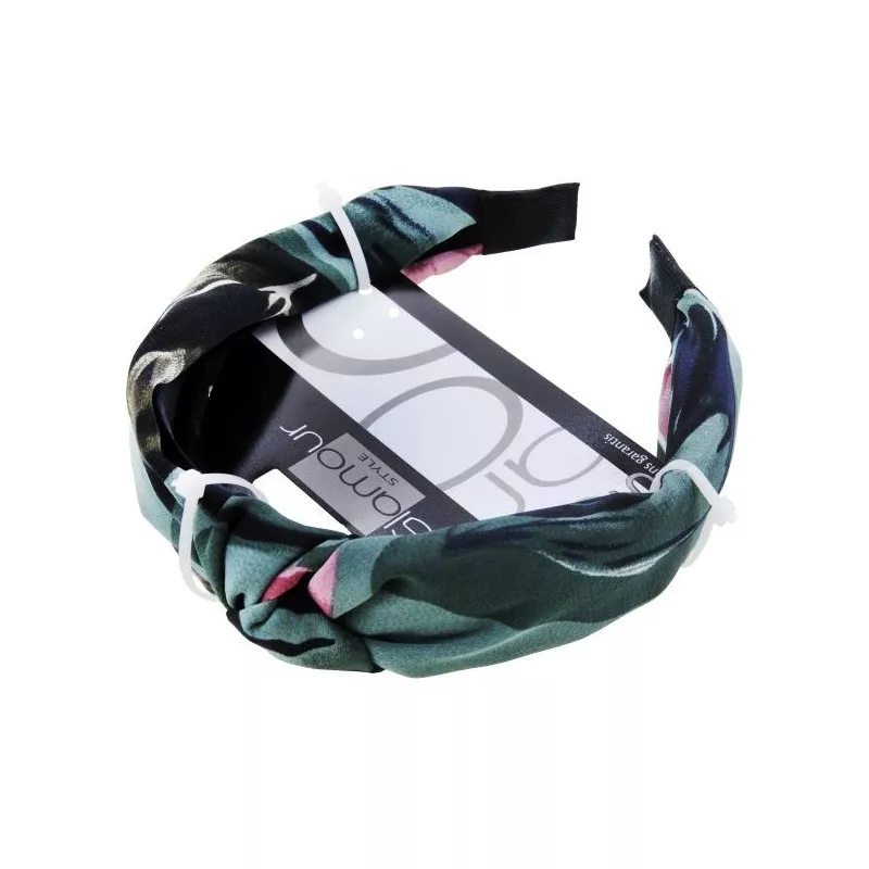 Odkryj wyjątkową Glamour Green Collection opaskę do włosów z węzłem, która łączy styl i wygodę. Ta elegancka opaska jest pokryta wysokiej jakości poliestrem, ozdobionym przepięknym botanicznym wzorem, który doda Twojej stylizacji świeżości i elegancji.