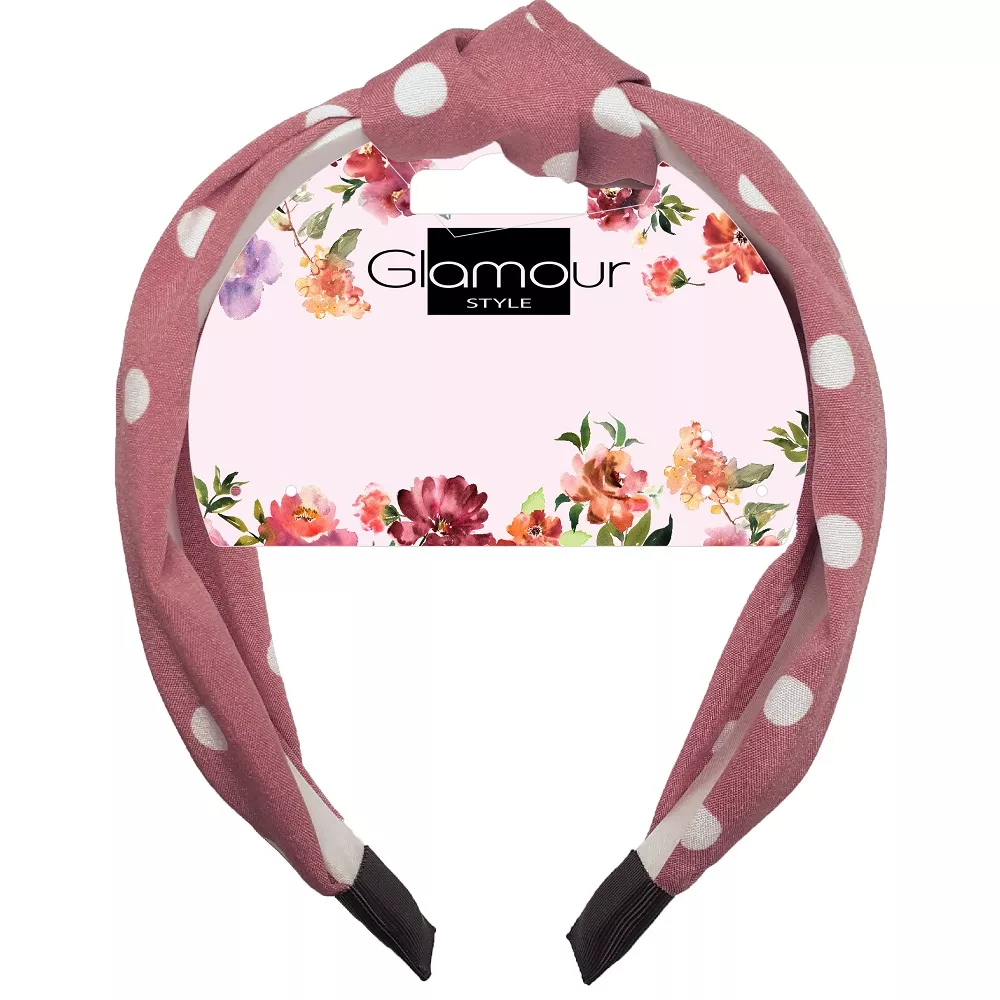 Opaska do włosów Glamour z węzłem w kolorze różowym, ozdobiona ponadczasowymi kropkami, to elegancki dodatek, który podkreśli Twój styl. Wykonana z wysokiej jakości poliestru, doskonale dopasowuje się do kształtu głowy, zapewniając komfort noszenia przez cały dzień. Idealna zarówno na co dzień, jak i na większe wyjścia.