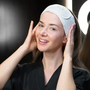 - Załóż opaskę na głowę, odsuwając włosy od twarzy.