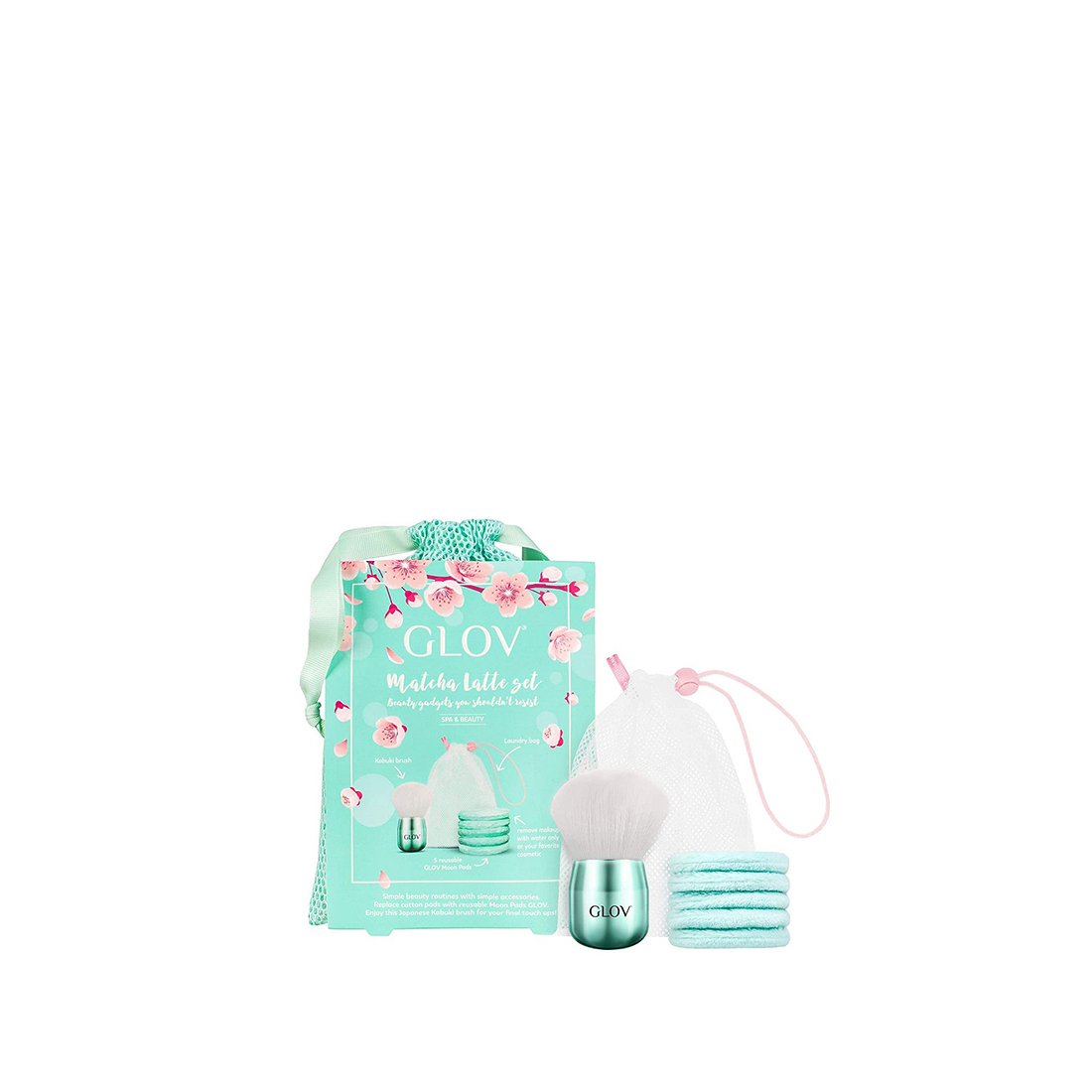Zestaw Glov Matcha Latte w kolorze inspirowanym modnym napojem matcha latte to kompletny zestaw kosmetyczny zawierający Twoje ulubione akcesoria. W skład zestawu wchodzi pięć wielokrotnego użytku płatków kosmetycznych, które można używać przez okres do trzech miesięcy, pod warunkiem odpowiedniej pielęgnacji. Zestaw uzupełnia aksamitnie miękki pędzel kabuki z syntetycznym włosiem, idealny do blendowania pudru, różu lub bronzera. Całość jest zapakowana w praktyczny worek w kolorze świeżej mięty, doskonały do podróży i przechowywania.
