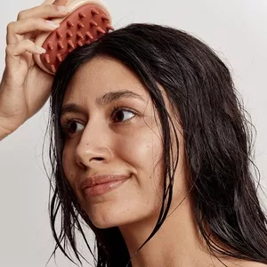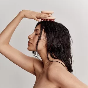 - Masuj skórę głowy szczotką, wykonując małe, koliste ruchy.