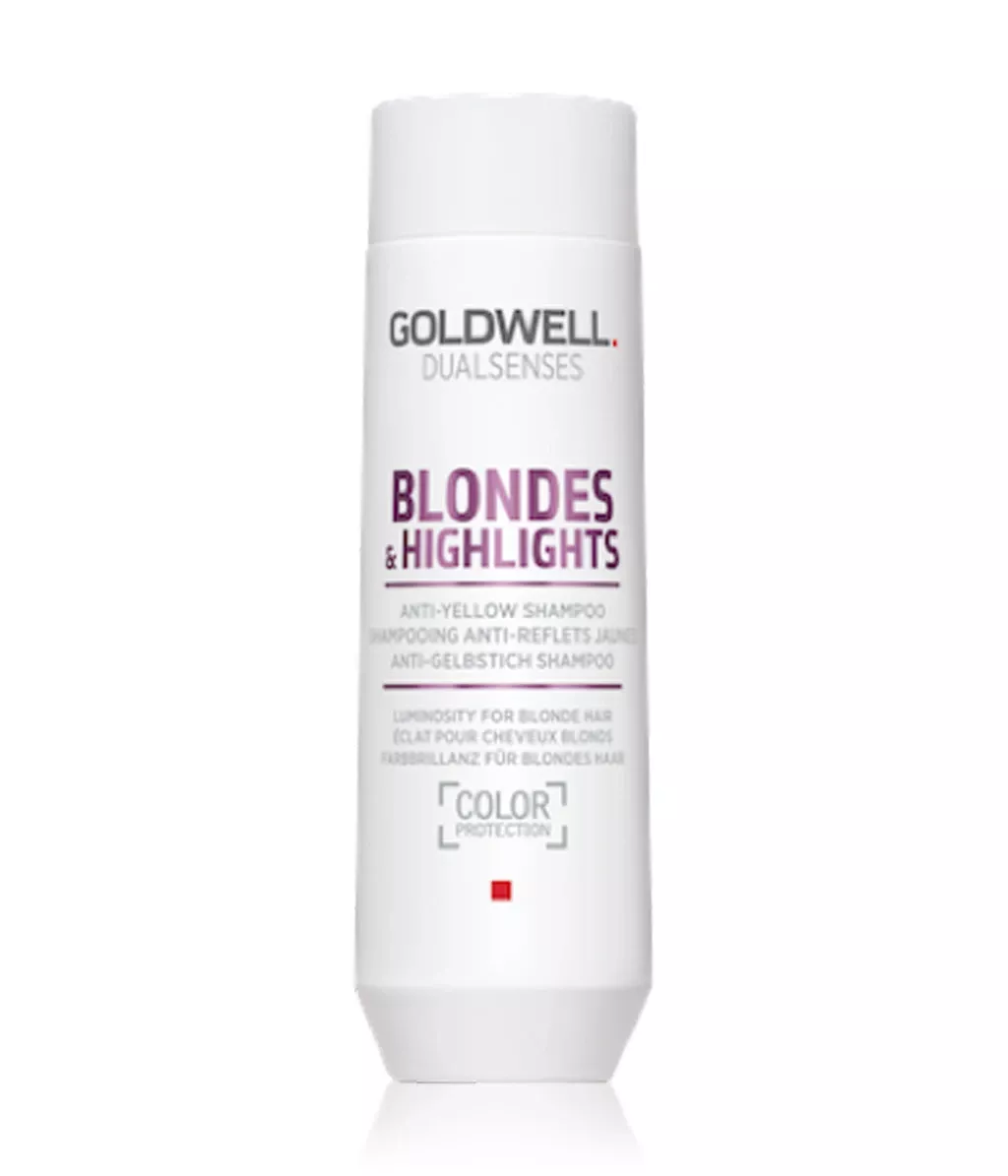 Szampon Goldwell Dualsenses Blondes&Highlights powstał z myślą o włosach blond lub z pasemkami. Jego głównym zadaniem jest neutralizowanie niechcianych żółtych odcieni. Ponadto świetnie wydobywa połysk koloru. Swoje działanie opiera na technologii microPROtec complex z wbudowaną ochroną koloru, która w równomierny sposób rozprowadza składniki pielęgnacyjne. Dzięki temu efekt odżywienia jest odczuwalny natychmiast. Ponadto udoskonalona FadeStopFormula redukuje wypłukiwanie się koloru w trakcie mycia włosów. Całkowitą innowacją zastosowaną w tej serii jest technologia Luminescine, która przemienia niewidzialne światło UV w widoczne świałto dla niezrównanej promienistości koloru.
