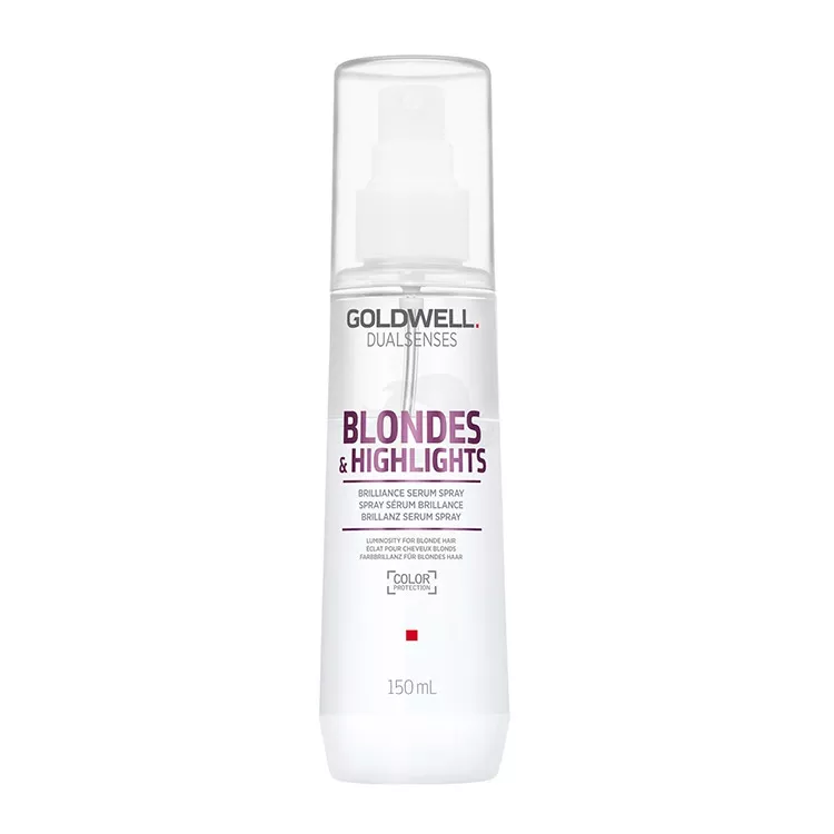 Serum nabłyszczające Goldwell Dualsenses Blondes&Highlights powstało z myślą o włosach blond lub z pasemkami. Kosmetyk natychmiast przypieczętowuje kolor, pielęgnuje i ułatwia rozczesywanie. Chroni pasma przed działaniem wysokiej temperatury. Ponadto świetnie wydobywa połysk koloru. Swoje działanie opiera na technologii microPROtec complex z wbudowaną ochroną koloru, która w równomierny sposób rozprowadza składniki pielęgnacyjne. Dzięki temu efekt odżywienia jest odczuwalny natychmiast. Ponadto udoskonalona FadeStopFormula redukuje wypłukiwanie się koloru w trakcie mycia włosów. Całkowitą innowacją zastosowaną w tej serii jest technologia Luminescine, która przemienia niewidzialne światło UV w widoczne światło dla niezrównanej promienistości koloru.