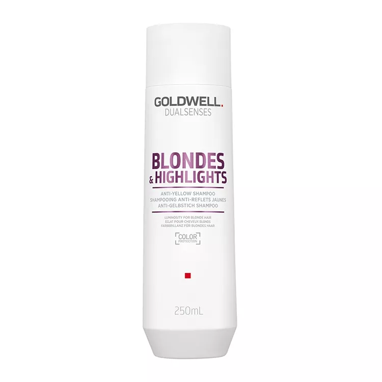 Szampon Goldwell Dualsenses Blondes&Highlights powstał z myślą o włosach blond lub z pasemkami. Jego głównym zadaniem jest neutralizowanie niechcianych żółtych odcieni. Ponadto świetnie wydobywa połysk koloru. Swoje działanie opiera na technologii microPROtec complex z wbudowaną ochroną koloru, która w równomierny sposób rozprowadza składniki pielęgnacyjne. Dzięki temu efekt odżywienia jest odczuwalny natychmiast. Ponadto udoskonalona FadeStopFormula redukuje wypłukiwanie się koloru w trakcie mycia włosów. Całkowitą innowacją zastosowaną w tej serii jest technologia Luminescine, która przemienia niewidzialne światło UV w widoczne światło dla niezrównanej promienistości koloru.