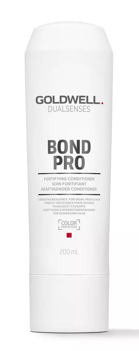 Wzmacniająca odżywka do włosów Goldwell Bond Pro poprawia sprężystość włosów i zmniejsza ich łamliwość, ponadto natychmiast sprawia, że są mocniejsze. Pasma są bardziej odporne na mechaniczne uszkodzenia i nie łamią się w trakcie szczotkowania i rozczesywania. W składzie odżywki znajdują się wzmacniające proteiny sojowe.