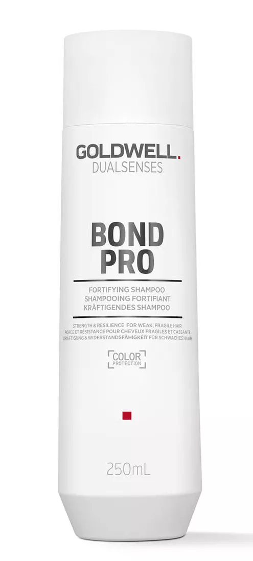 Szampon do włosów Goldwell Bond Pro natychmiast ulepsza strukturę łamliwych, osłabionych włosów i zapewnia im codzienną pielęgnację. Specjalne formuła FadeStop minimalizuje blaknięcie koloru z każdym myciem włosów.
