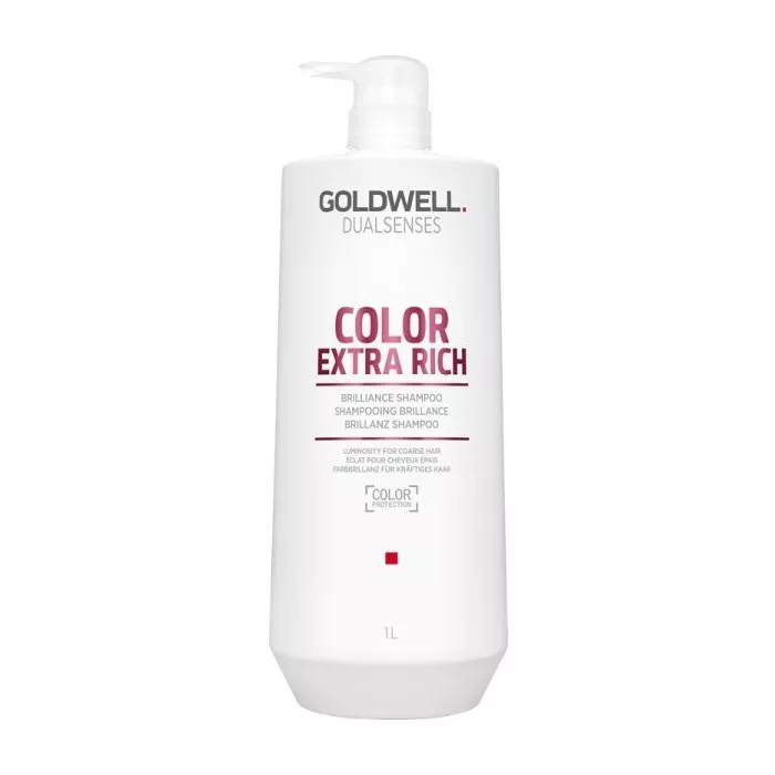 Szampon Goldwell Dualsenses Color Extra Rich przeznaczony jest do pielęgnacji włosów farbowanych, naturalnych, grubych i opornych. Kosmetyk natychmiast wydobywa połysk koloru. Swoje działanie opiera na technologii microPROtec complex z wbudowaną ochroną koloru, która w równomierny sposób rozprowadza składniki pielęgnacyjne. Dzięki temu efekt odżywienia jest odczuwalny natychmiast. Ponadto udoskonalona FadeStopFormula redukuje wypłukiwanie się koloru w trakcie mycia włosów. Całkowitą innowacją zastosowaną w tej serii jest technologia Luminescine, która przemienia niewidzialne światło UV w widoczne światło dla niezrównanej promienistości koloru.