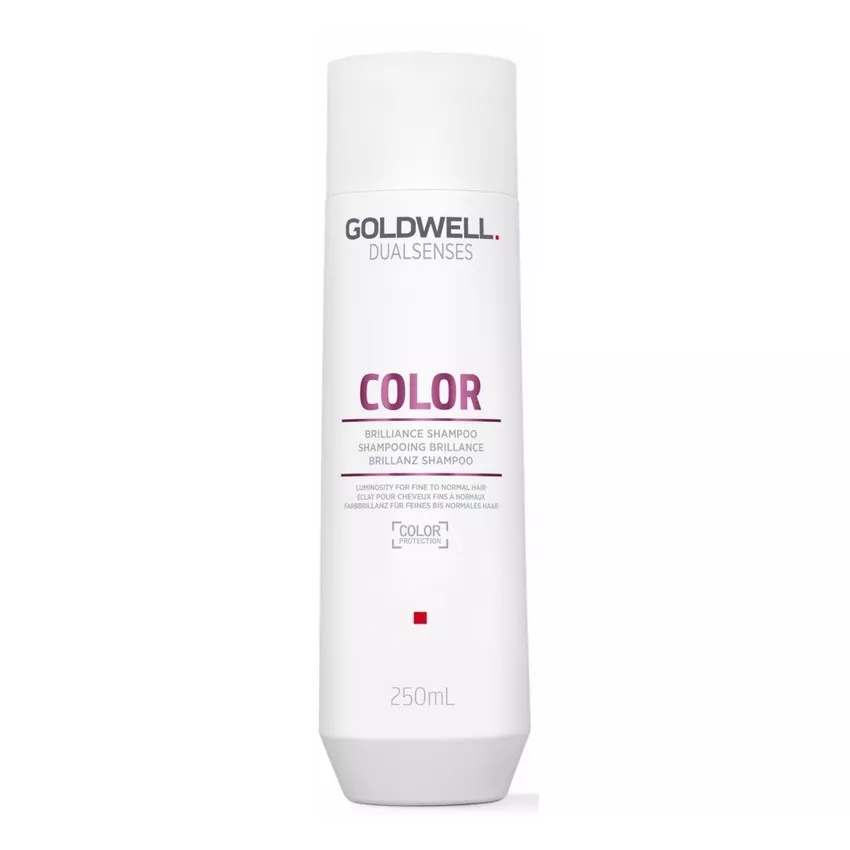 Szampon Goldwell Dualsenses Color przeznaczony jest do pielęgnacji włosów farbowanych, naturalnych, cienkich i normalnych. Kosmetyk natychmiast wydobywa połysk koloru. Swoje działanie opiera na technologii microPROtec complex z wbudowaną ochroną koloru, która w równomierny sposób rozprowadza składniki pielęgnacyjne. Dzięki temu efekt odżywienia jest odczuwalny natychmiast. Ponadto udoskonalona FadeStopFormula redukuje wypłukiwanie się koloru w trakcie mycia włosów. Całkowitą innowacją zastosowaną w tej serii jest technologia Luminescine, która przemienia niewidzialne światło UV w widoczne światło dla niezrównanej promienistości koloru.