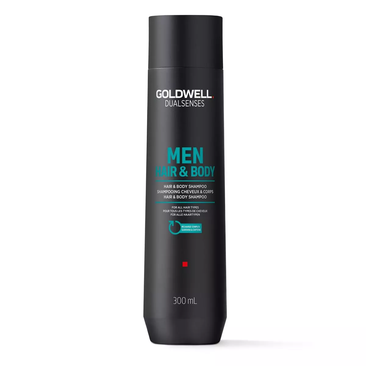 Produkt przeznaczony specjalnie dla mężczyzn do codziennej pielęgnacji wszystkich rodzajów włosów oraz ciała. Szampon Goldwell Dualsenses for Men dobrze się pieni i usuwa zanieczyszczenia ze skóry i włosów. Zapewnia natychmiast odczuwalne odżywienie i nawilżenie. W efekcie włosy są silne, a skora wypielęgnowana. W składzie znajduje się Recharge Complex, ktory zawiera guaranaę i kofeinę.
