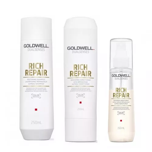 Goldwell Dualsenses Rich Repair, zestaw odbudowujący, szampon + odżywka + serum w sprayu, 250ml + 200ml + 150ml
