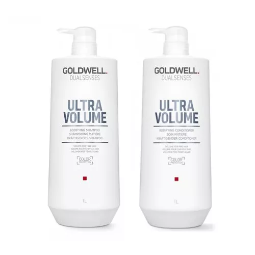 Szampon Goldwell Dualsenses Ultra Volume dedykowany jest włosom cienkim, osłabionym. Kosmetyk zapewnia pasmom widoczną i odczuwalną objętość oraz wydobywa z nich naturalny połysk. W składzie znajduje się unikalna FadeStopFormula, która redukuje wypłukiwanie się koloru w przypadku włosów farbowanych. Odżywka Goldwell Dualsenses Ultra Volume dedykowana jest włosom cienkim, osłabionym. Kosmetyk zapewnia pasmom widoczną i odczuwalną objętość, wzmocnienie oraz wydobywa z nich naturalny połysk. Świetnie rozplątuje włosy i ułatwia ich rozczesywanie po umyciu.