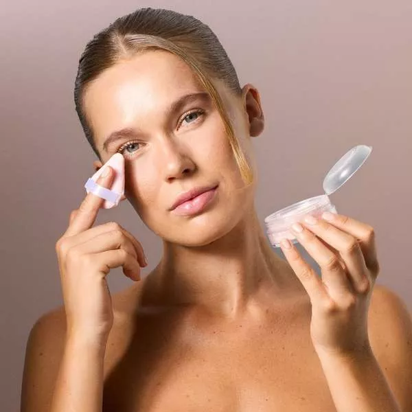 - Unikalne opakowanie zawiera wieczko zabezpieczające do kontrolowania pudru i puchaty aplikator w kształcie trójkąta do łatwej techniki bakingu.