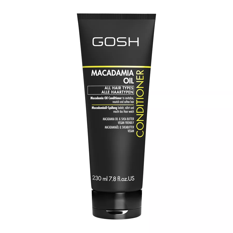 Twoje włosy są suche i zniszczone? Sięgnij po odżywkę GOSH Macadamia Oil, która zapewnia włosom nabłyszczenie oraz wygładzenie. Dzięki zawartości oleju macadamia, masła shea oraz prowitaminy B5, kosmetyk świetnie rewitalizuje, odżywia, nawilża i pielęgnuje skórę głowy. Odżywka jest idealna do codziennej pielęgnacji, wolna od parabenów i przyjazna dla wegan.