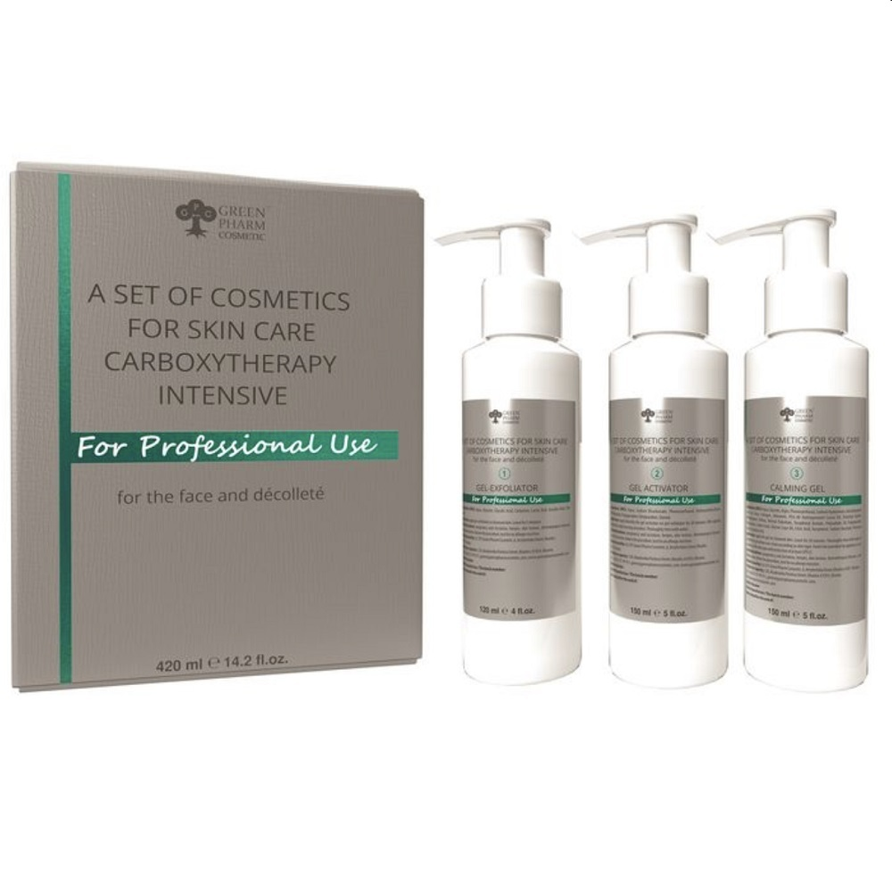 Green Pharm Cosmetic Carboxytherapy Intensive to profesjonalny zestaw kosmetyczny do pielęgnacji skóry twarzy i obszaru dekoltu o pojemności 420 ml. Produkt został opracowany z myślą o skutecznej, nieinwazyjnej karboksyterapii, która poprawia kondycję skóry, przywraca jej elastyczność oraz głęboko nawilża. Cała kuracja opiera się na trzech etapach, zapewniających pełny efekt zabiegu i widoczne rezultaty już po kilku zastosowaniach. To rozwiązanie przeznaczone wyłącznie do użytku profesjonalnego, idealne do gabinetów kosmetycznych i salonów urody.