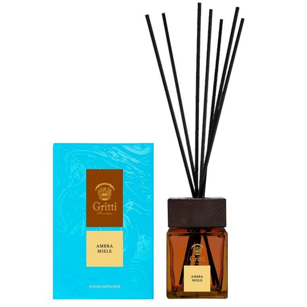 Gritti Ambra Miele to wyjątkowy dyfuzor zapachowy z patyczkami o pojemności 250 ml, który wprowadza do wnętrz unikalną kompozycję aromatyczną. Aksamitne nuty dzikiego miodu oraz złocistego bursztynu splatają się w harmonijną całość, tworząc atmosferę ciepła i przytulności. Delikatna mgiełka benzoesu i rozgrzewające akcenty szlachetnych przypraw nadają zapachowi głębię i zmysłowość, które otulają każde pomieszczenie wyjątkowym aromatem.