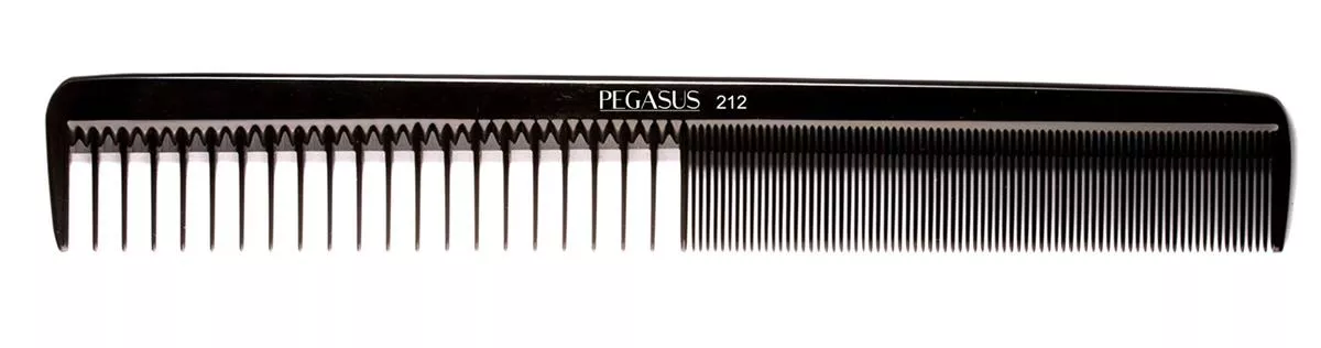 Grzebień barberski Pegasus 2012 to niezastąpione narzędzie podczas strzyżenia. Grzebień został wykonany z twardego kauczuku. Zapobiega elektryzowaniu się włosów. Narzędzie jest odporne na wysokie temperatury. Wzmocniony włóknami węglowymi, grzebień Pegasus cechuje się znaczną trwałością. Grzebień posiada bezszwowe zęby Flexinite, co sprawia, że można zapomnieć o podrażnieniu skóry głowy. Ząbki są elastyczne i współdziałają z włosami i innymi narzędziami. Włosy gładko przesuwają się po grzebieniu, nie są szarpane ani niszczone. Grzebień jest lekki, łatwo się go myje. Idealny do włosów mokrych i suchych.