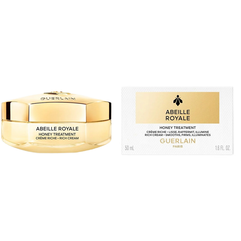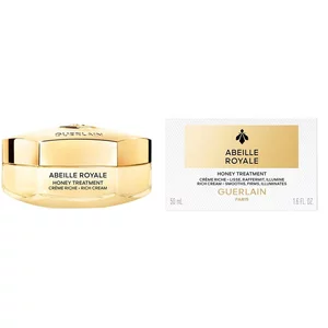Guerlain Abeille Royale Bogaty Krem na Dzień 50ml to naprawcza siła anti-aging zainspirowana klinicznymi opatrunkami z miodem. Ten luksusowy krem na dzień wykorzystuje innowacyjną technologię Guerlain oraz dobroczynne właściwości produktów pszczelich, aby przeciwdziałać czterem widocznym oznakom utraty kolagenu: utracie jędrności, gładkości, blasku oraz pojawianiu się zmarszczek.