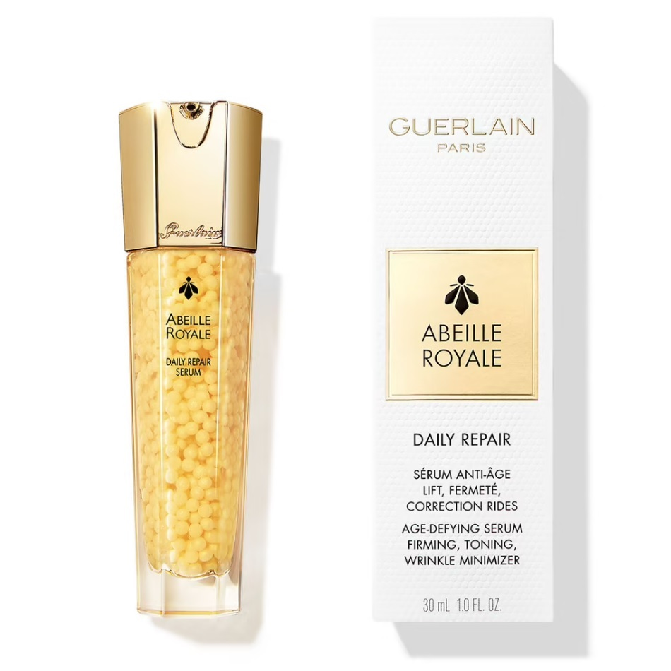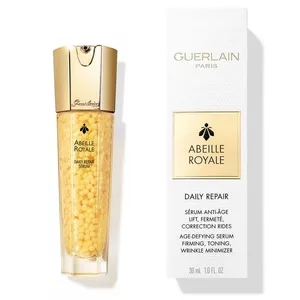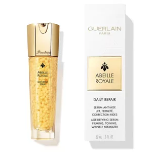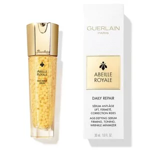 Guerlain Abeille Royale Daily Repair Serum to wyjątkowe serum przeciwstarzeniowe, które dzięki swojej unikalnej konsystencji dostarcza intensywnego działania rewitalizującego. Oparte na ekskluzywnym mleczku pszczelim Guerlain i czystym miodzie Ouessant, serum działa nieprzerwanie, zapewniając pełną jędrność i wypełniając skórę od wewnątrz. Już od pierwszej kropli skóra staje się elastyczniejsza, a kontury twarzy ulegają przemodelowaniu, nadając młodszy wygląd.