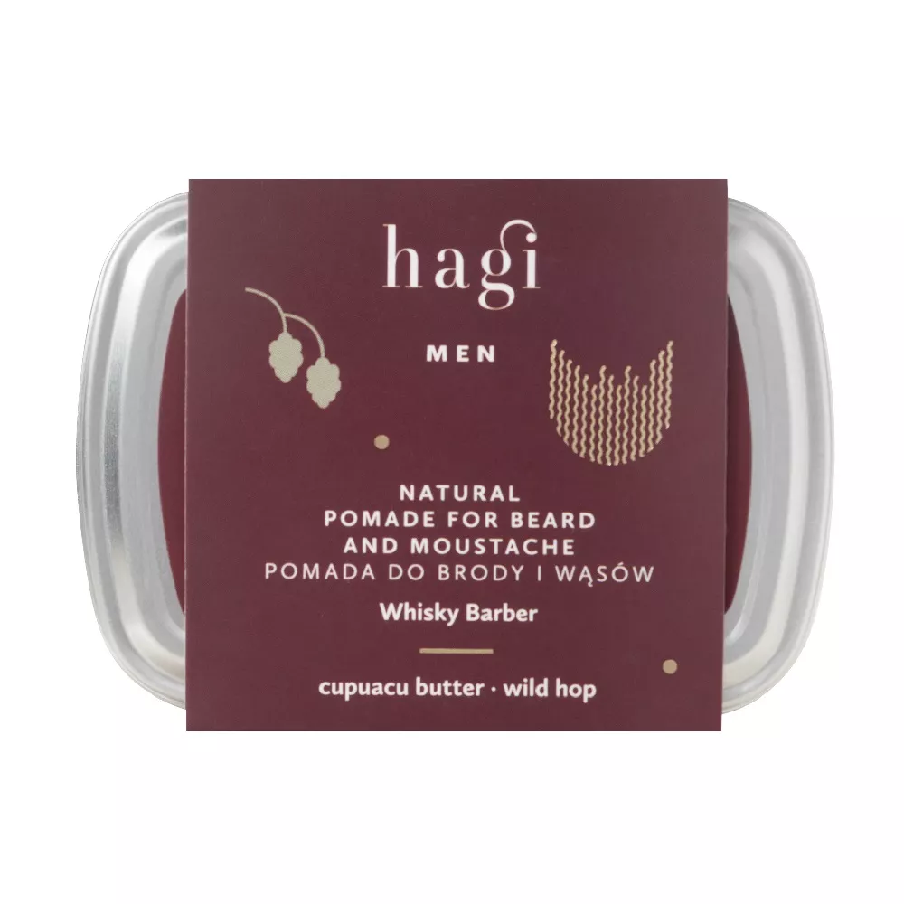 Odkryj wyjątkową pielęgnację dla swojego zarostu z naturalną pomadą Hagi Whisky Barber. Ten produkt nie tylko ujarzmi Twoją brodę i wąsy, ale także zmiękczy i odżywi skórę. Dzięki naturalnym składnikom, takim jak masła shea, cupuacu, mango, olej konopny i jojoba oraz olejowe ekstrakty z jęczmienia i dzikiego chmielu, Twoja skóra i zarost będą w doskonałej kondycji. Głęboki zapach whisky i tytoniu zapewni Ci przyjemność przez cały dzień, a naturalne woski ułatwią stylizację.
