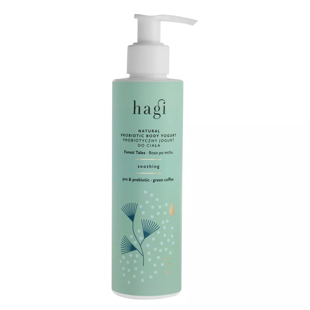 Hagi Probiotyczny jogurt do ciała Boso Po Mchu 200ml to wyjątkowy kosmetyk, który łączy w sobie ujędrnienie, ochronę i ukojenie skóry. Jego lekka, kremowo-żelowa konsystencja zapewnia natychmiastowe nawodnienie oraz szybkie wchłanianie. Dzięki zawartości łagodzącego aloesu, d-pantenolu, ujędrniającego oleju z zielonej kawy oraz kompleksu ekstraktów z jabłek i kasztanowca, skóra staje się miękka i elastyczna. Chlorofil nadaje produktowi piękny, naturalny zielony kolor. Idealny do pielęgnacji skóry po kąpielach słonecznych i wodnych, wspiera naturalny mikrobiom dzięki pre- i probiotykom. Nie zawiera sztucznych barwników.