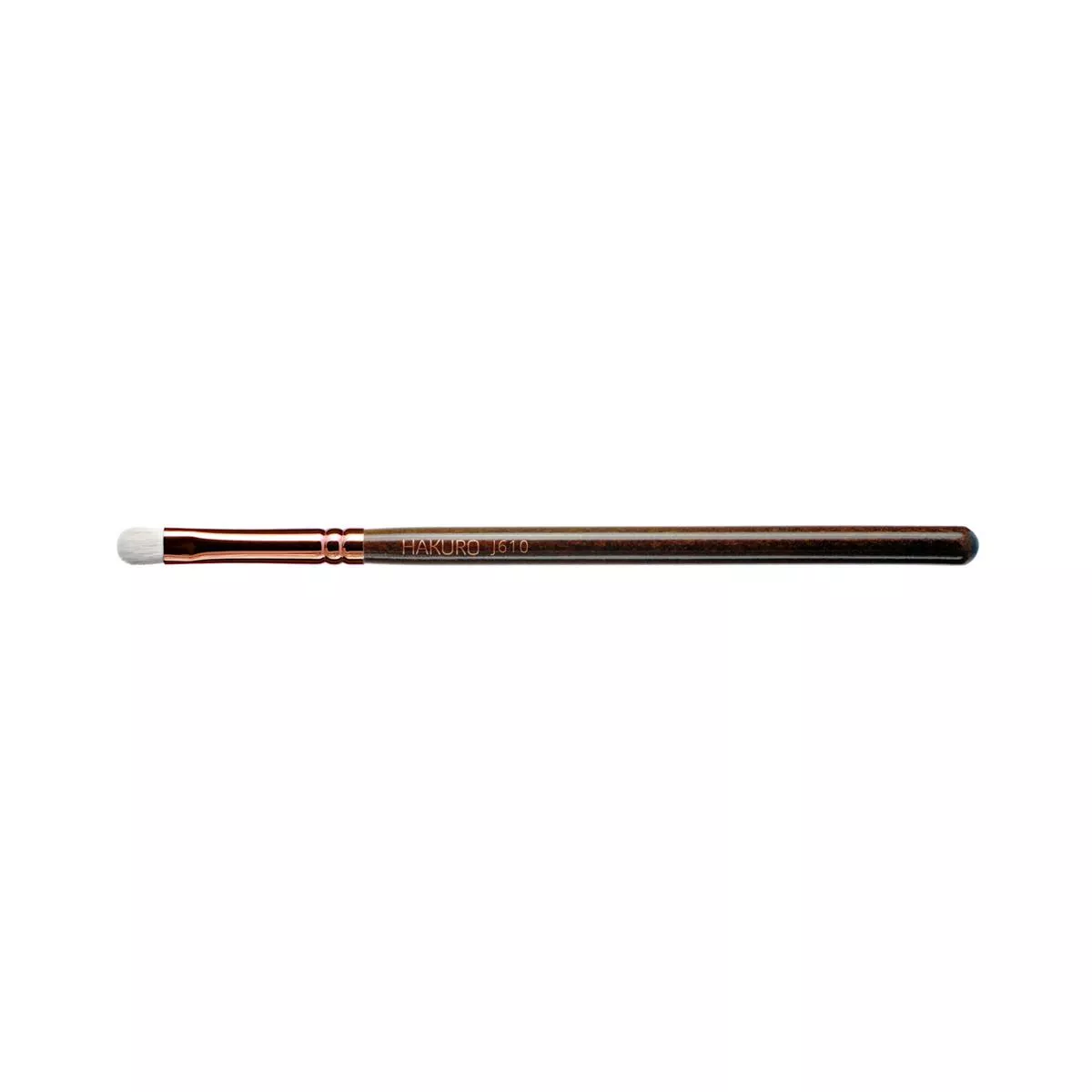 Hakuro J610 to profesjonalny pędzel do cieni do powiek w kolorze ciemnobrązowym, stworzony z wysokiej jakości włosia syntetycznego. Dzięki niemu precyzyjnie nałożysz cienie na nieruchomą powiekę, pod łukiem brwiowym oraz rozświetlacz w kąciku oka. Pędzel został starannie wykonany – ma solidną, drewnianą rękojeść oraz lekko zaokrąglony kształt, co gwarantuje wygodę i precyzję aplikacji. Włosie syntetyczne zachowuje się jak naturalne, dlatego stanowi doskonałą alternatywę dla osób poszukujących produktów cruelty free lub unikających naturalnego włosia.