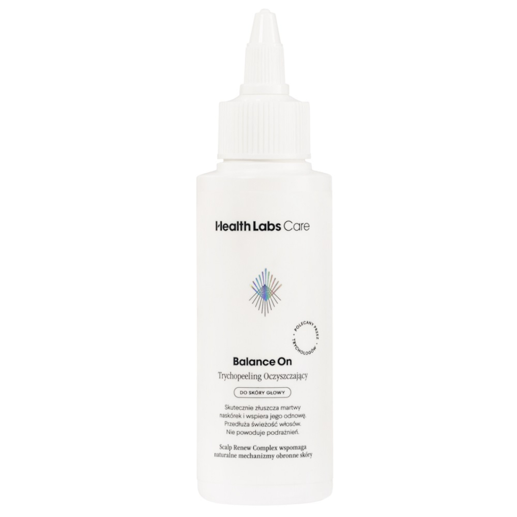 HealthLabs Balance On trychopeeling oczyszczający do skóry głowy to innowacyjny produkt, który delikatnie, ale skutecznie złuszcza martwy naskórek, głęboko oczyszcza skórę głowy oraz normalizuje pracę gruczołów łojowych. Dzięki niemu zmniejszysz przetłuszczanie się włosów, przedłużysz ich świeżość i zredukujesz zmiany o charakterze łupieżowym.